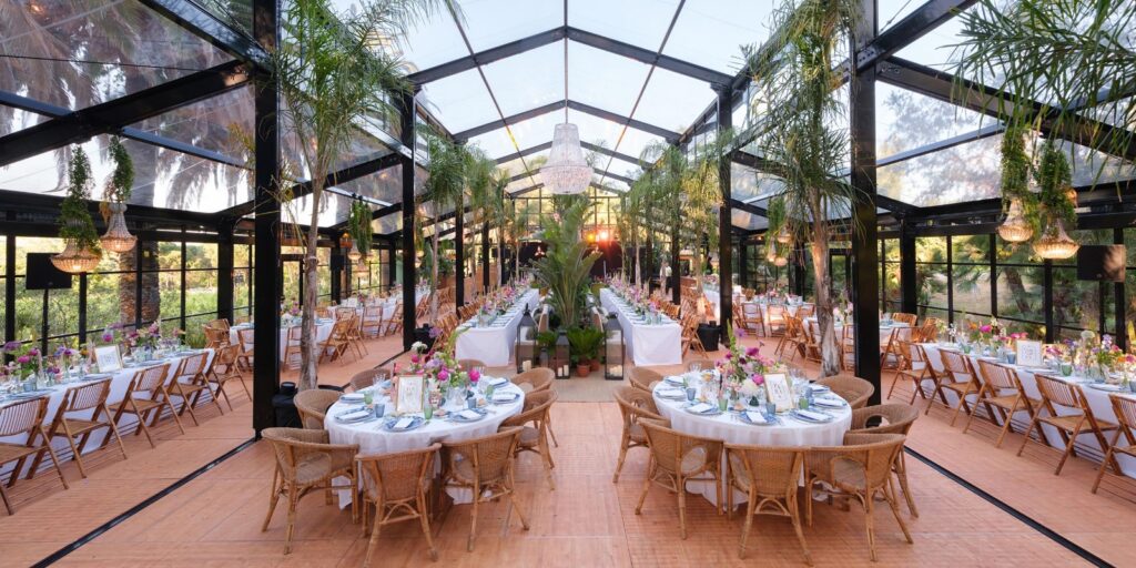 L’effet « grange » fonctionne merveilleusement pour les mariages, garden-parties ou tout événement cherchant une ambiance authentique.