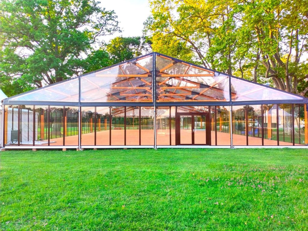 Le bi-pente est la structure la plus polyvalente : mariage intimiste, exposition, village de Noël, espace de restauration, salon professionnel ou soirée de gala. Nous l’adaptons à votre projet en jouant sur la surface, l’aménagement et les finitions.