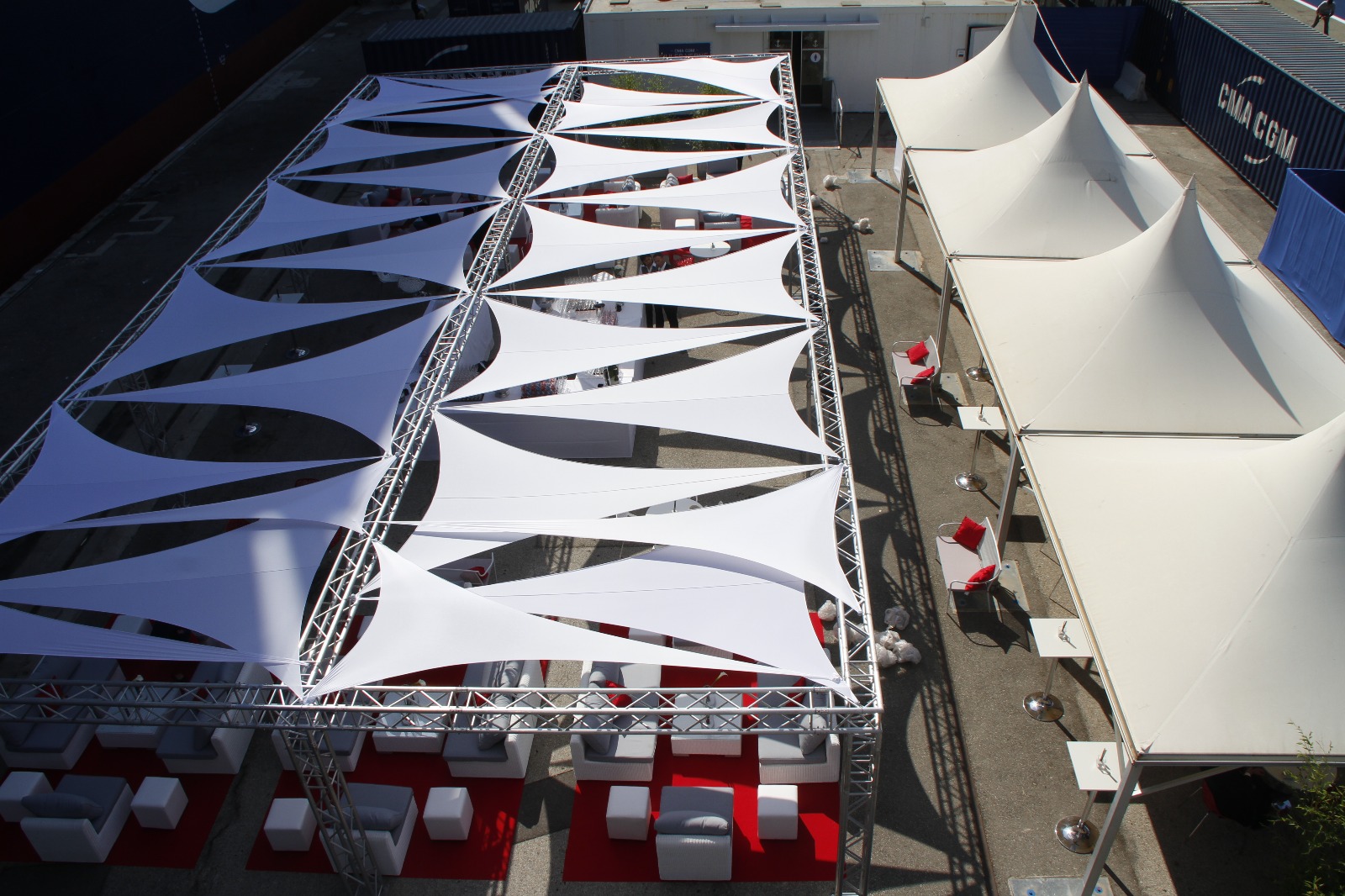 Nos structures garantissent un cadre sérieux, sobre et confortable, tout en restant modulables. Des volumes clairs, un rendu professionnel et des installations fiables, même sur des timings serrés.