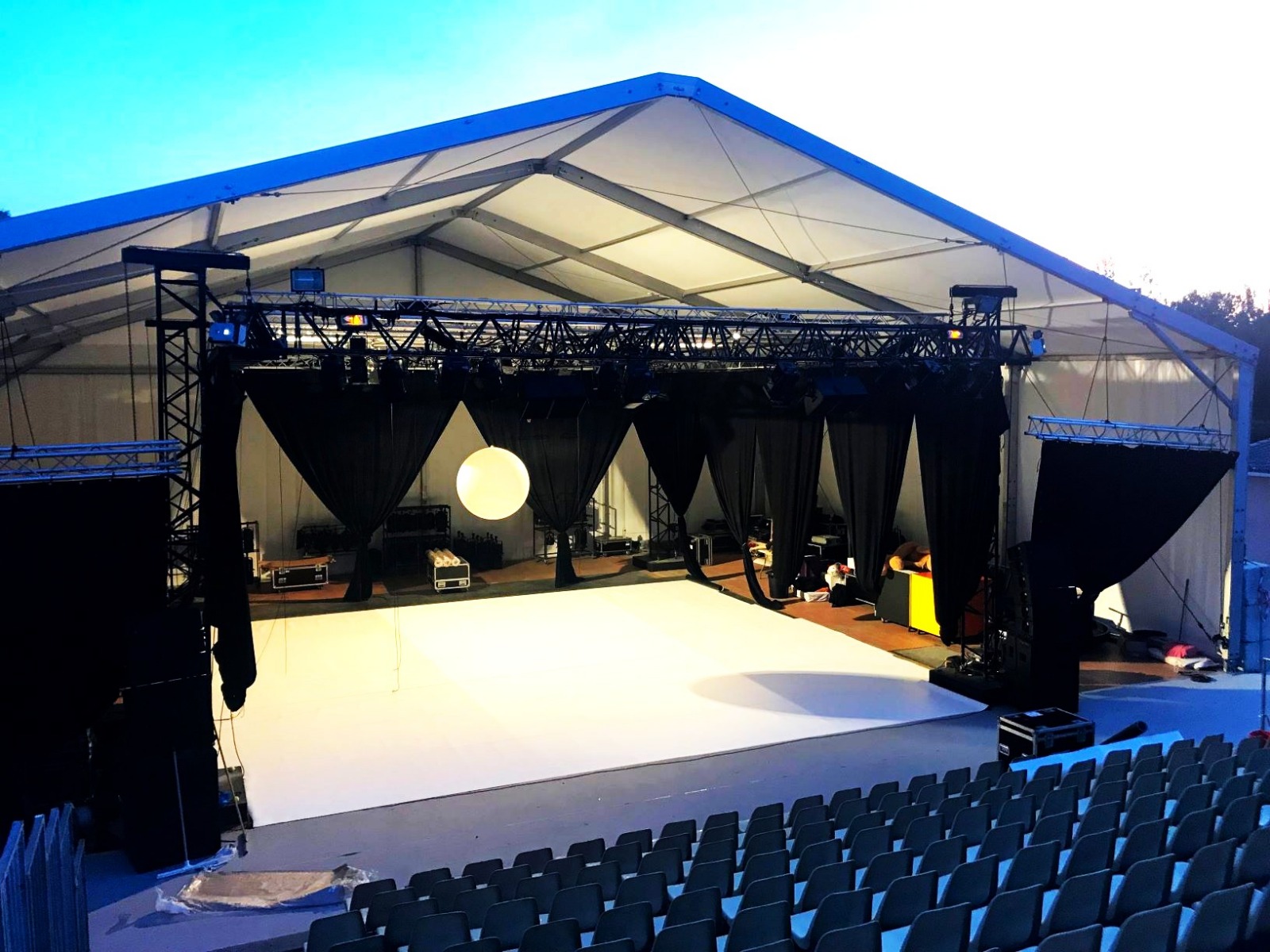 Chapiteaux, tentes, podiums, planchers, éclairages, structures scéniques, espaces exposants, zones techniques… tout est pensé pour que votre événement soit fluide, accueillant et parfaitement maîtrisé.